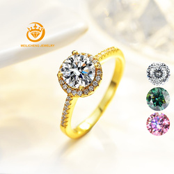 Anillo de plata de ley S925 al por mayor de fábrica, bolsa redonda de lujo de moissanita, anillo femenino de 1 quilate chapado con joyería de oro de 14K
