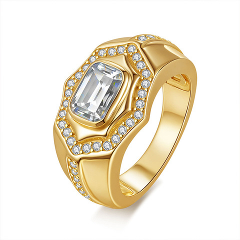 Lichte Luxe Hiphopstijlen 925 Sterling Zilver D Kleur 2 Karaat Moissanite Ring Voor Mannen Verlovingsfeestring